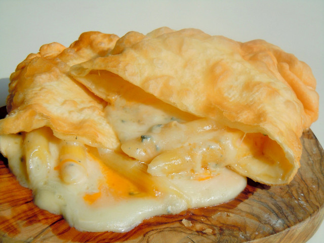 パンツェロッテリアオリジナルのサクッとした生地にフレッシュモッツァレッラチーズ、ゴルゴンゾーラチーズ、ゴーダチーズ、そしてレッドチェダーチーズを包みこみました。