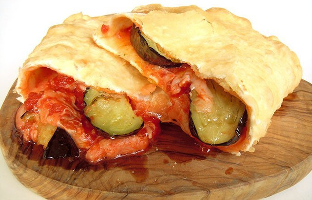 シチリア島の伝統的なレシピで、たっぷりの自家製トマトソースとフレッシュモッツァレッラチーズ、素揚げをしたナスがごろりとパンツェロッテリアオリジナルのサクッとした生地の中に包まれています。
