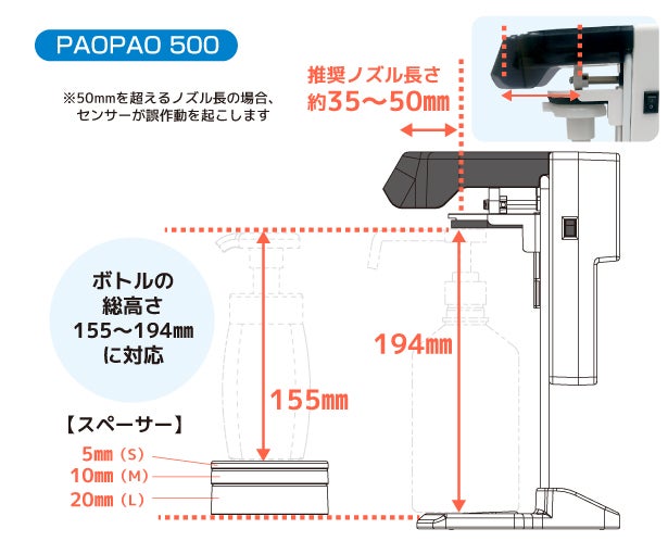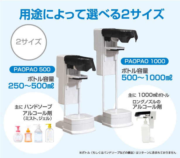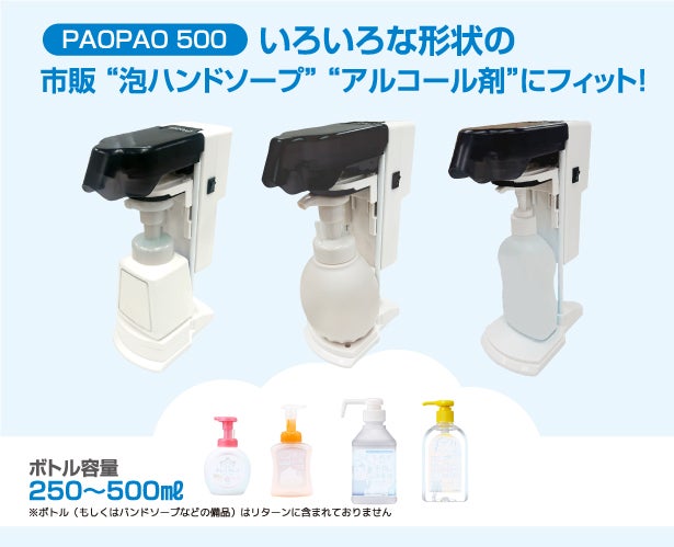 2. PAOPAO 500 ボトル容量250~500㎖のハンドソープ、アルコール剤(ミスト、ジェル)に対応