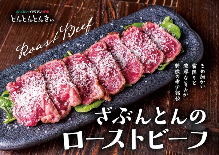 メインメニュー:山わさびと自家製ざぶとんローストビーフの冷製タリアータ