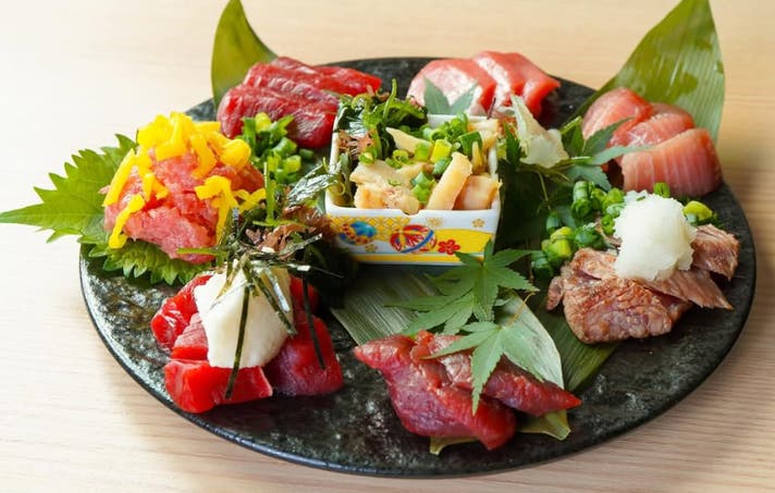 メインメニュー:まぐろのお刺身盛り(赤身・中トロ・脳天・ほほ肉ほか5種)