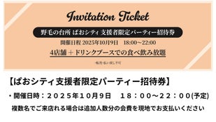 ・10,000円 応援購入者限定パーティー招待券(全カウンター食べ飲み放題/オープン後開催予定)