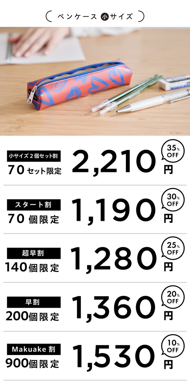 超早割 ペンケース サイズ 小 140個限定 1280円