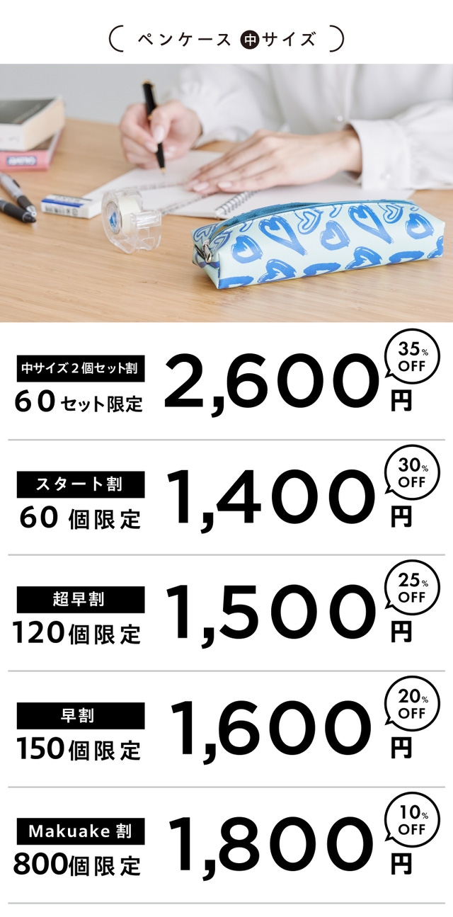Makuake割 ペンケース サイズ 中 800個限定 1800円