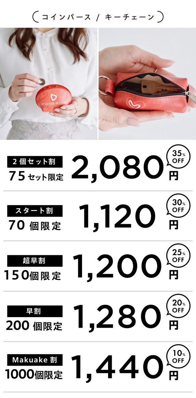 2個セット割 キーチェンまたはコインパース 75セット限定 2080円