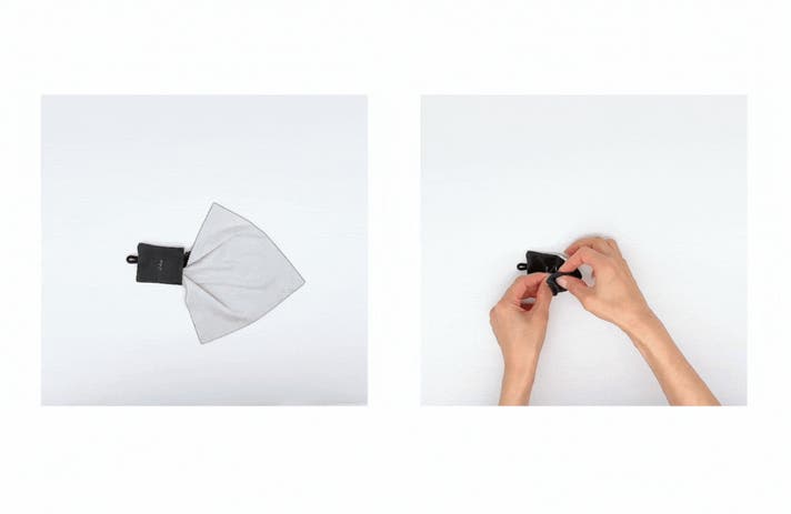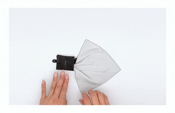 カラビナを外して巾着部分に指を入れると、よりしっかりと細かな汚れも拭き取れます。