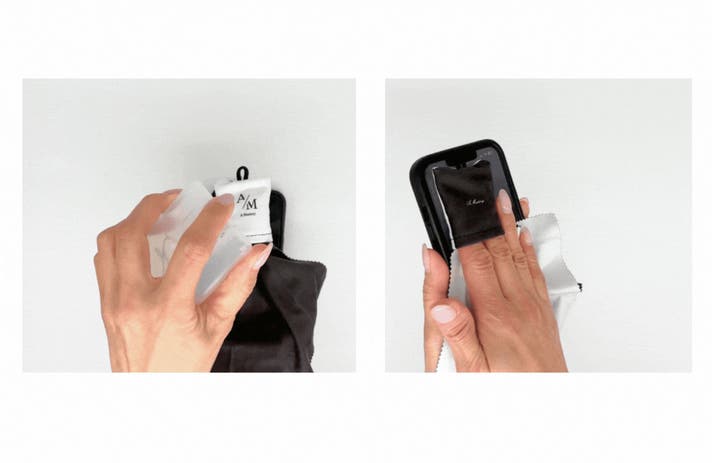 - カラビナ付でスマホに装着できるので、気になった瞬間に「サッ」と拭けて、清潔がいつもすぐそばに。