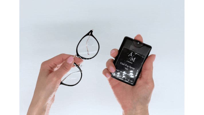 快晴スプレー(曇り止めスプレー)をお手持ちのメガネレンズの表裏に塗布し、専用クロスもしくは、PC Wrapで広げます。まるで肌にローションを塗るように優しく拭いてください。その時に、曇り止めの効果を最大12時間発揮します。