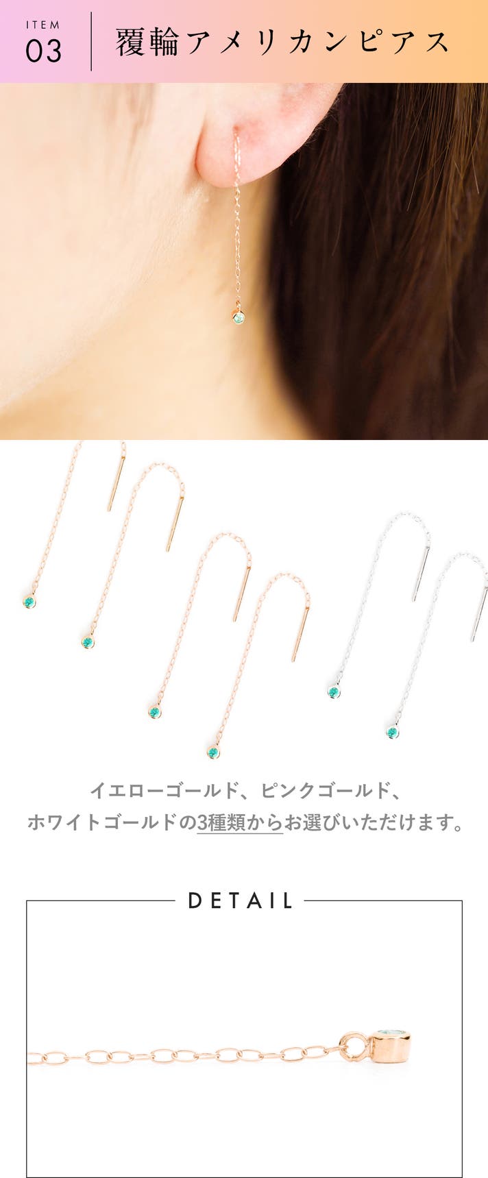 K10YG(イエローゴールド)/K10WG(ホワイトゴールド)/K10PG(ピンクゴールド) ※オプションより3種類からお選びいただけます。