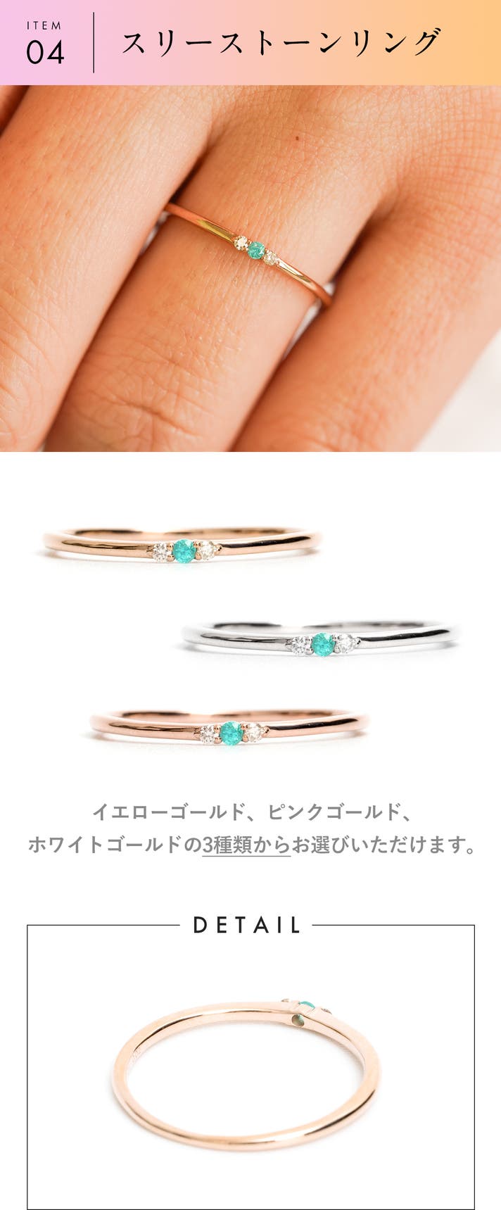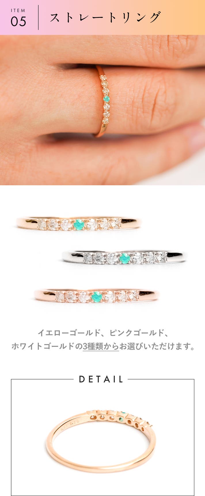 鑑定歴34年の熟練バイヤーが発見し、厳選した宝石を使った、10金のジュエリーです。金の資産価値だけではなく、末永く愛用できるよう、デザインのバランスを考えた程よい大きさの宝石を使い、洗礼されたデザインにしております。