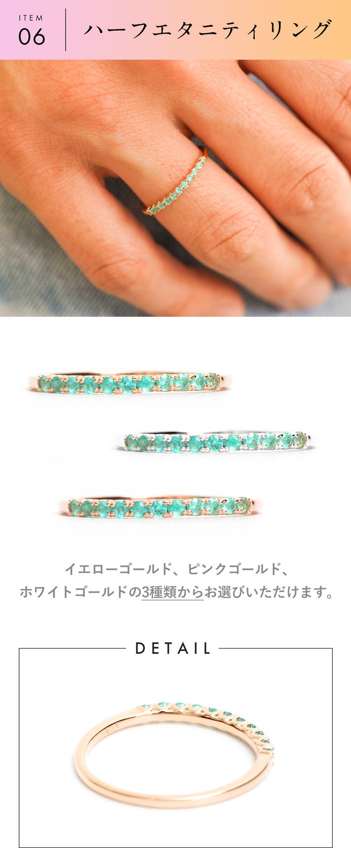 【Makuake価格】パライバトルマリン 10金 ハーフエタニティリング r3