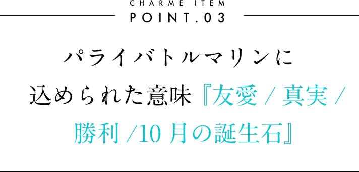 パライバトルマリンには『友愛』『真実』『勝利』という意味が込められいて、10月の誕生石としても知られています。