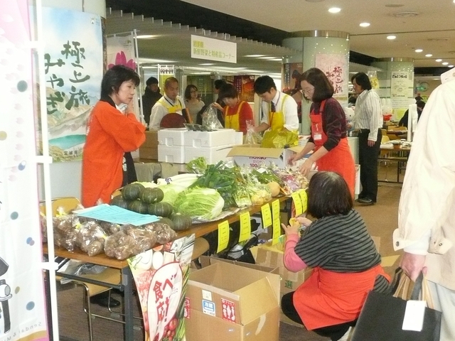全国、東北6県&被災地域より契約栽培や契約農・漁家から委託された農・水産物を展示し、機能性農・水産物を提供するスタイル。