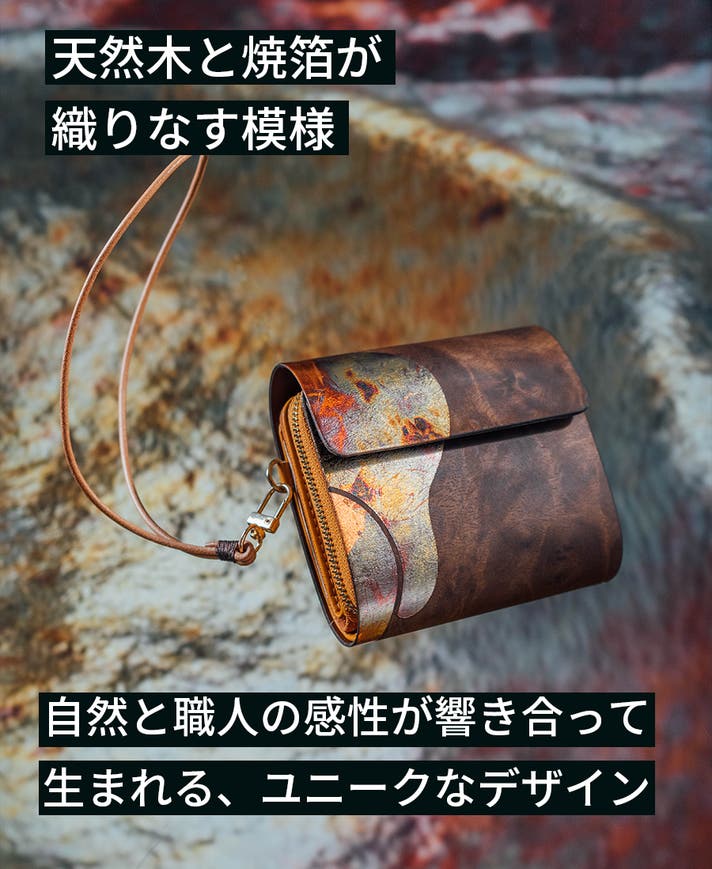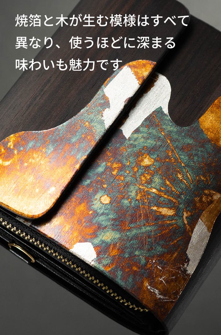 - 台湾の職人が一点ずつ手作業で制作。焼箔が描く模様は全て異なり、あなただけの財布に。