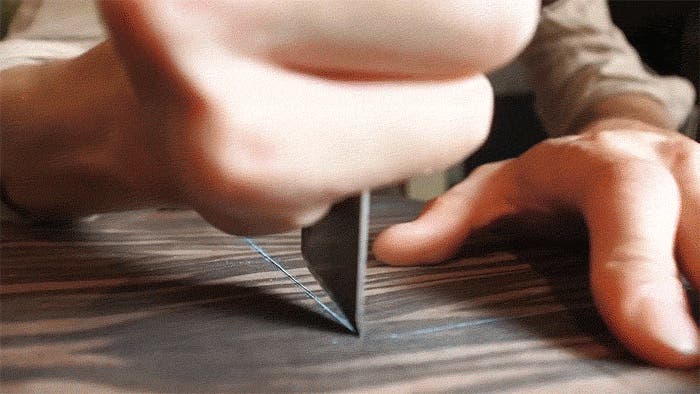 表面には、薄くスライスした天然木を使用。