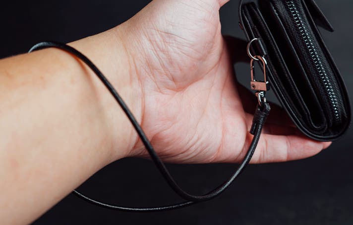 財布の引き手部に取り付け、手首に掛けられるストラップです。