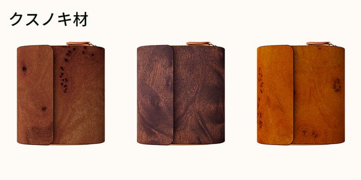 なお、木も革も一点一点異なる天然素材のため、質感や色味、わずかなキズや型押し模様の違いが見られることがありますが、いずれも製品の個性としてお楽しみください。