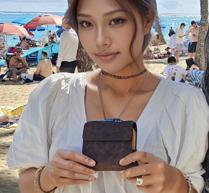 A、 見た目はコンパクトですが、必要なものがしっかり収まる収納力を備えています。スマートなフォルムの中に、カードや紙幣、コイン、レシートなど日常使いに十分な容量を確保。ミニマルなサイズ感と実用性を両立しています。