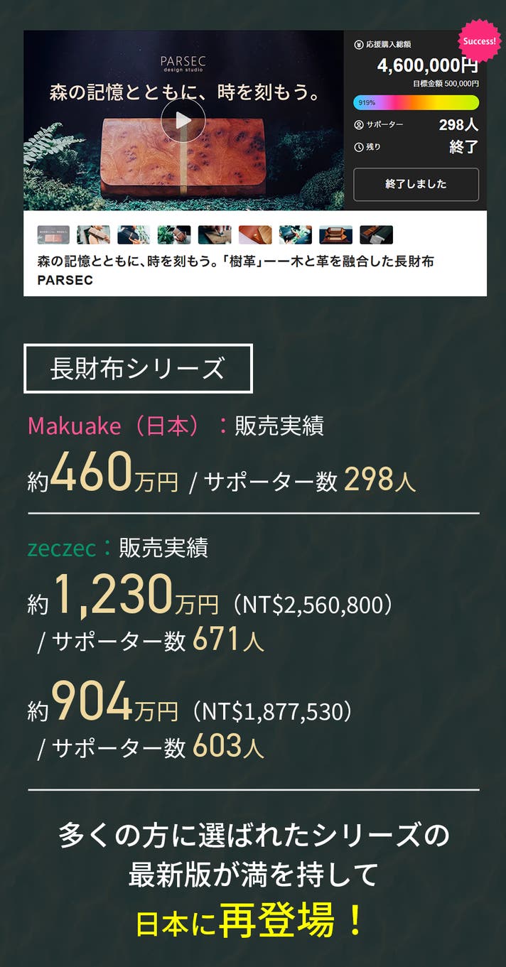 洗練されたデザインと確かな品質を兼ね備えたこのシリーズは、日本のMakuake・台湾のクラウドファンディング(zeczec)で累計2,500万円超の応援購入と支援を獲得!感度の高いユーザーから圧倒的な支持を受け、大きな話題となりました。