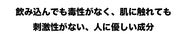 - 飲み込んでも毒性がなく、肌に触れても刺激性がない、人に優しい成分