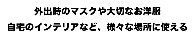 外出時のマスクや大切なお洋服、自宅のインテリアなどにも手軽に使用いただけます。