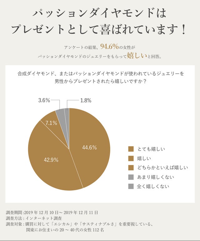 アンケートの結果、94.6%の女性が「パッションダイヤモンド」のジュエリーをプレゼントされると嬉しいと回答して頂いております!
