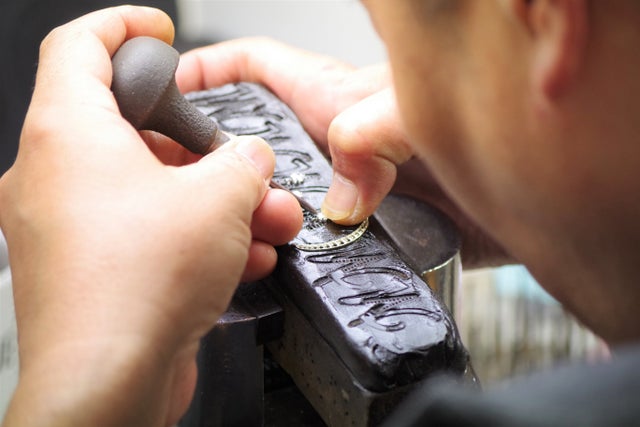 『ダンシングストーン』ジュエリーは、宝石の町『山梨県』の熟練したジュエリー職人によって製作されます。ダンシングストーンは2つのパーツの組み合わせなので、通常の製作工程の2倍の手間と時間が掛かり、専属の職人でしか作れない商品なのです。