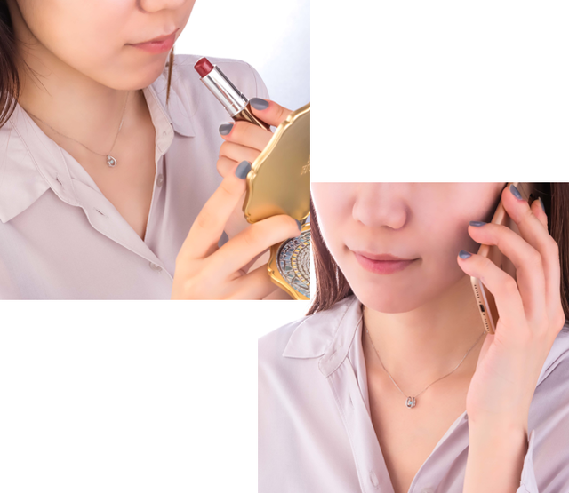 人は動いているモノに目を奪われる習性があり、このネックレスを着けているだけで視線を感じるかもしれません。毎日着けるのが楽しくなるジュエリーです!