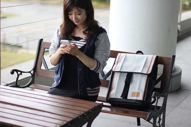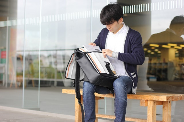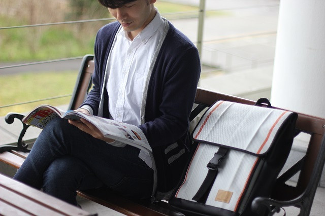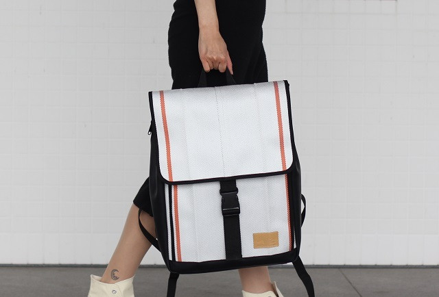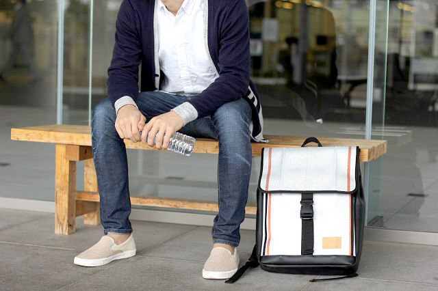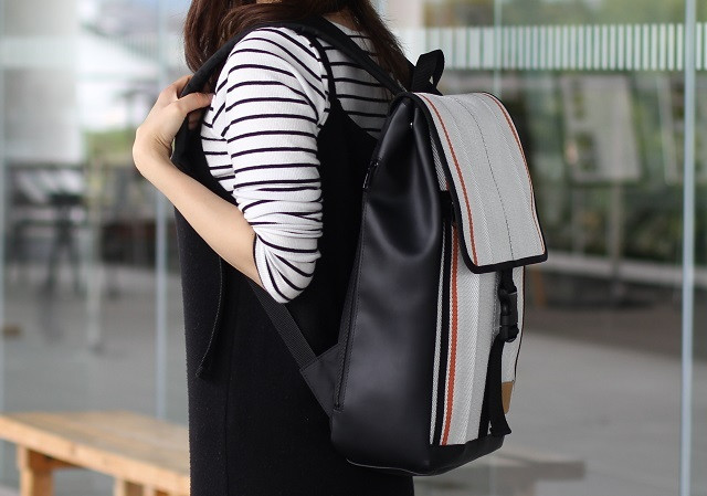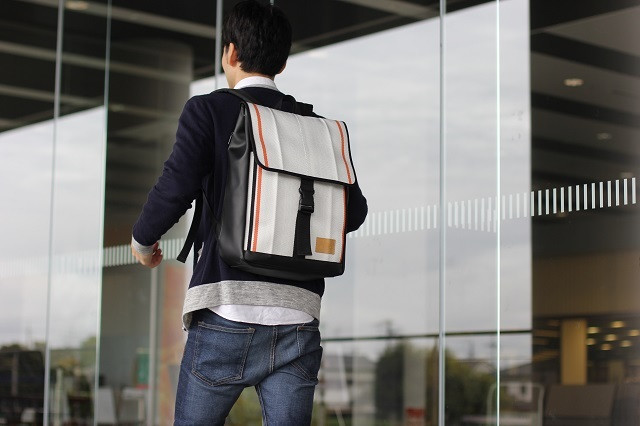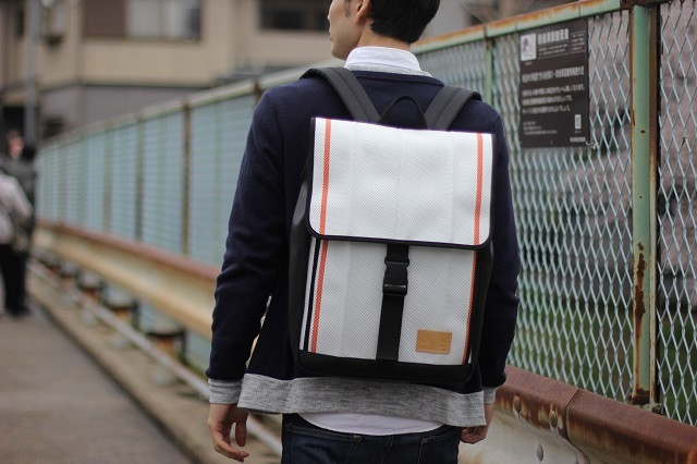 ・「廃棄消防ホース」をメイン素材にしたPC収納機能付きスクエアバックパック。