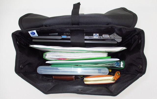 B4(A3もOK)の書類や、ファイル、雑誌・教本など、皆様が普段持ち歩くほとんどの物が余裕で収納できるメインルーム。