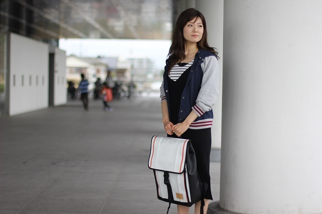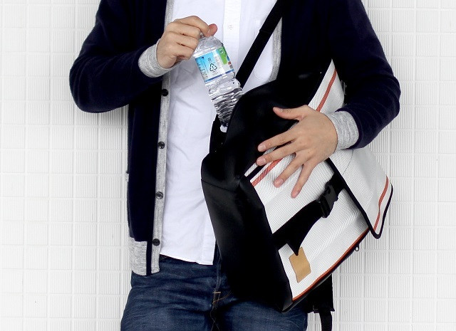 ・消防ホースの特性がデザインに活かされたスパイラルトートバッグです。
