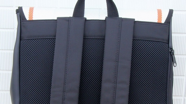 体に触れるリュック背面はメッシュ素材を使用する事で通気性がよく蒸れにくく夏場の不快感を軽減し体への負担を軽くします。