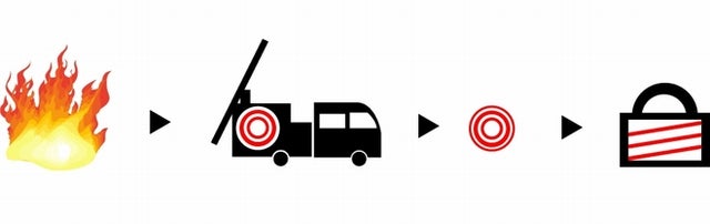 消防ホースには消防士が日頃使っているもの以外に、私達の身近にもあります。建物の中や大きい駐車場に設置されている「消火栓」と書かれた赤い箱の中に消防ホースが入っています。