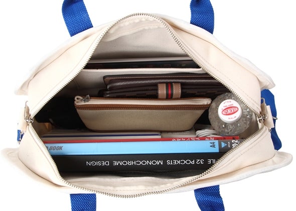 ・持ち手(ハンドル)・ショルダーベルトはブルー。