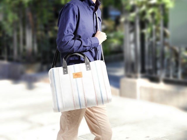 - 今回は大阪モード学園とコラボしてデザインして頂いた「ショルダートートバッグ」を製品化します。