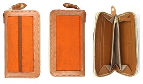 ラウンドファスナー長財布(オレンジ・1点モノ)・栃木レザー使用