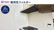 A. 難燃性素材を採用しているため、万一高温の油煙に触れても燃え広がりにくい設計です。