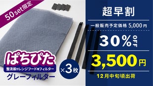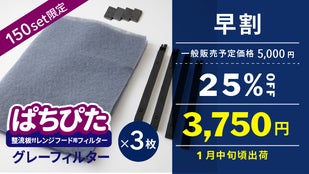 【マクアケ割】『ぱちぴた』整流板付レンジフード用フィルターグレーフィルター×3枚