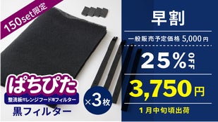 【マクアケ割】『ぱちぴた』整流板付レンジフード用フィルター黒フィルター×3枚