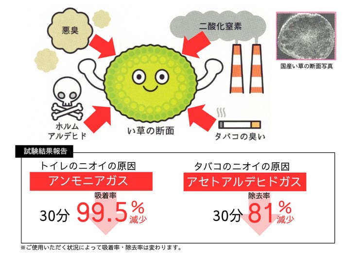 国産い草と竹炭シートのW効果で空気から消臭!