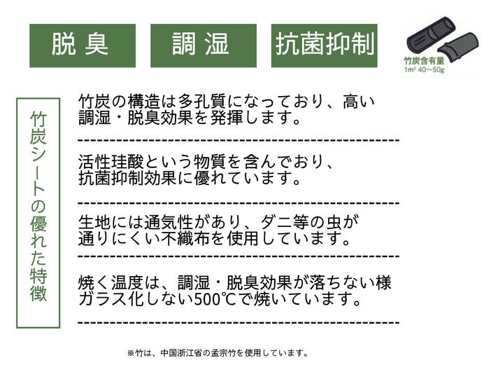 - 国産い草と竹炭シートのW効果で調湿・脱臭・抗菌抑制効果の超高機能!