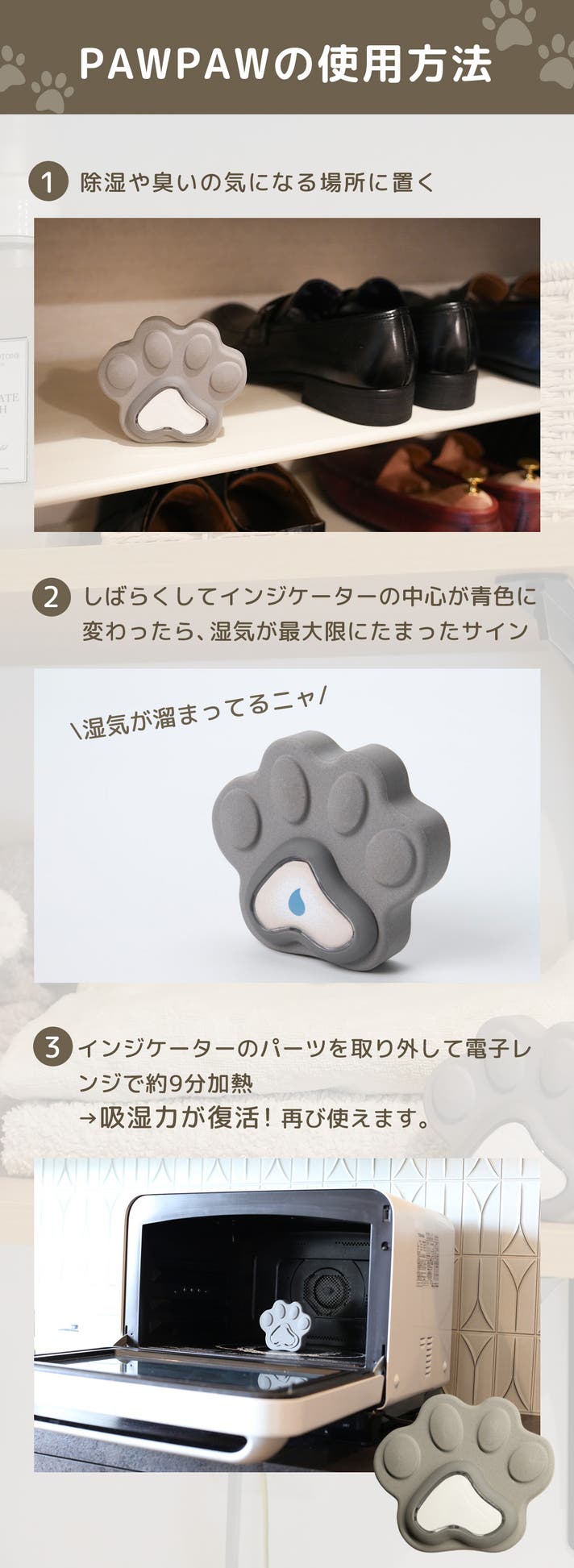PAWPAWは電子レンジでたった9分加熱するだけで吸湿力が復活!