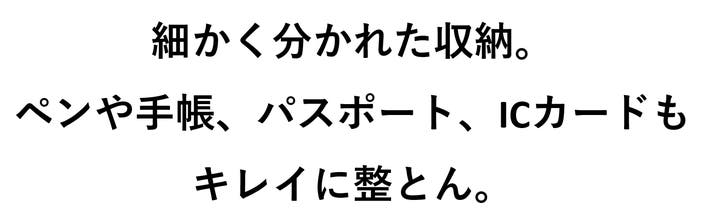 メイン収納の内側にも、細かく分かれたスペース。