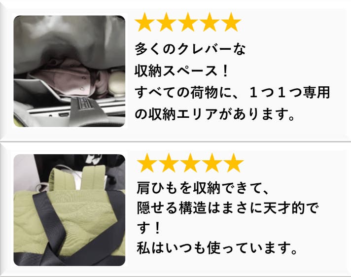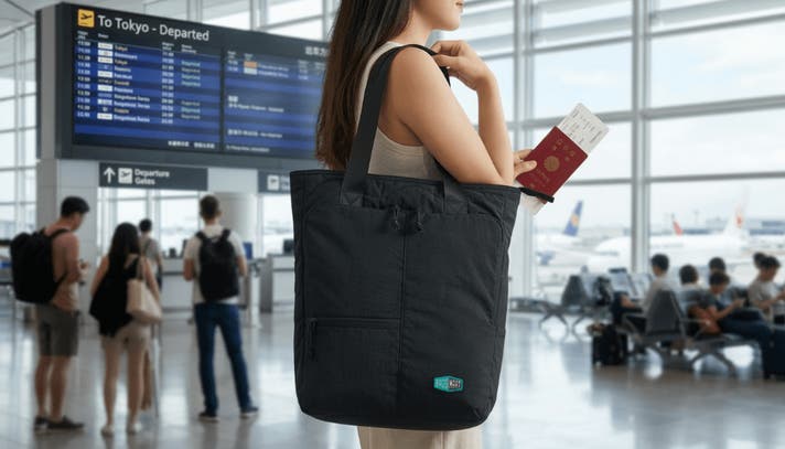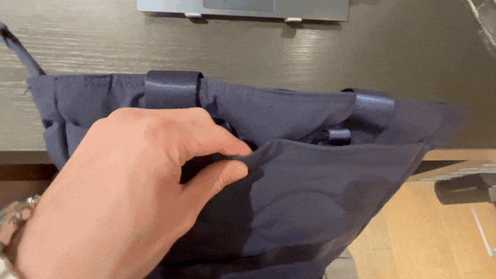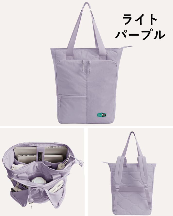 到着後は肩紐を収納してトートとして持つ