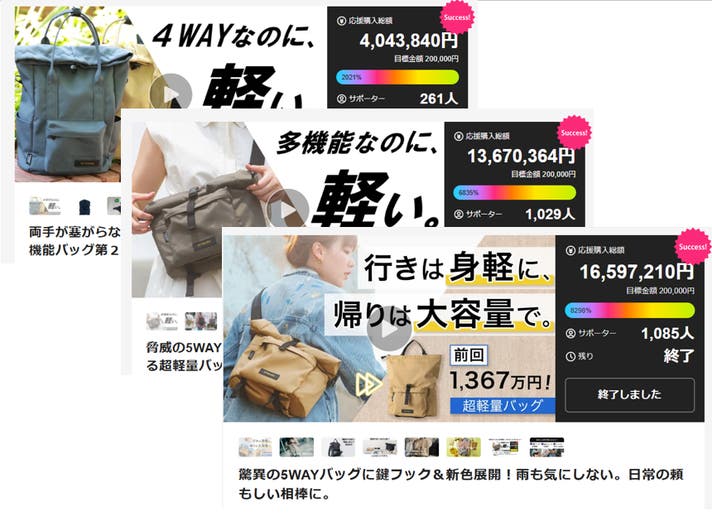 今までにも、Makuakeにて累計5,300万円以上の応援購入をいただいてきました。