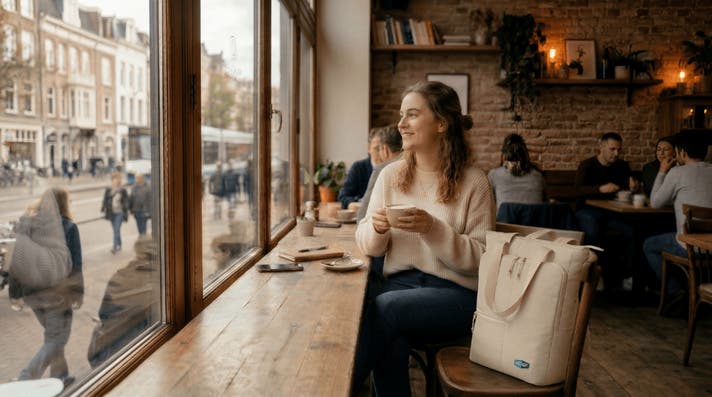 PCやタブレット、小物を整理して収納できるためカフェ作業にもおすすめです。
