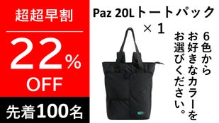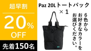 【超早割 20%OFF!限定150個】Paz 20Lトートパック×1