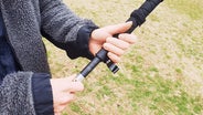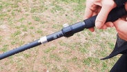 長さを合わせたら、シルバーの調節部を回してしっかりと固定し、スピードロックで閉めます。