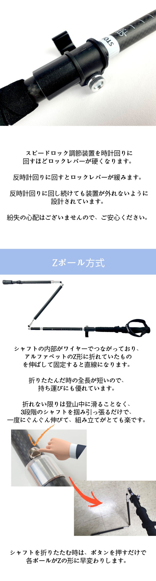 - Zポール方式のトレッキングポールで、一度に広げられ折りたたみ可能。