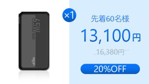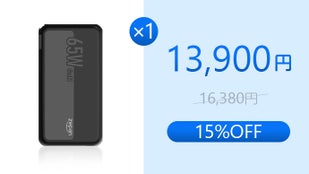 GaN(窒化ガリウム)の急速充電システムで、充電器モードとモバイルバッテリーモードの両方で最大出力65Wを実現。